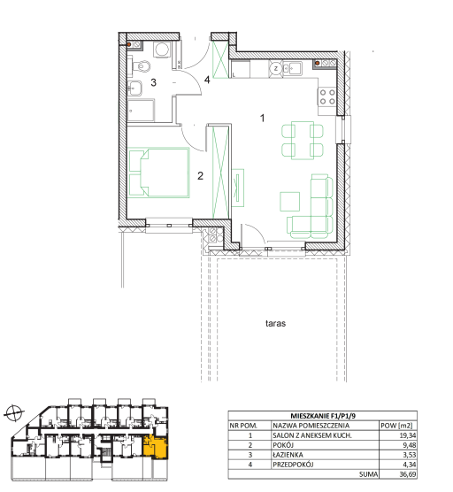 Układ (Pokoi+Aneks/Kuchnia): | 2P+A | |||