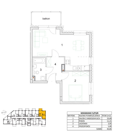 Układ (Pokoi+Aneks/Kuchnia): | 2P+A | |||