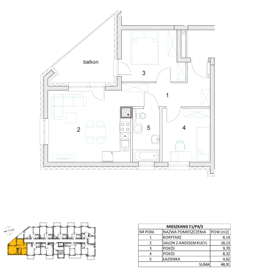 Układ (Pokoi+Aneks/Kuchnia): | 3P+A | |||