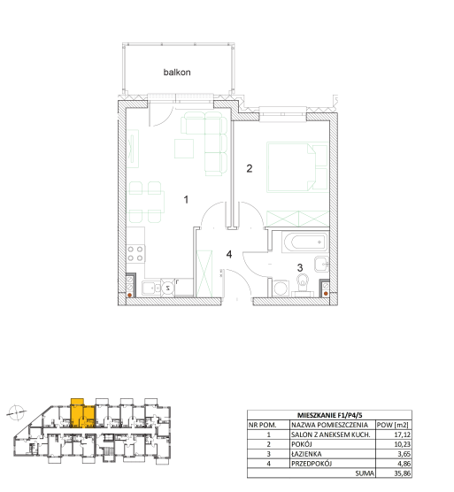 Układ (Pokoi+Aneks/Kuchnia): | 2P+A | |||